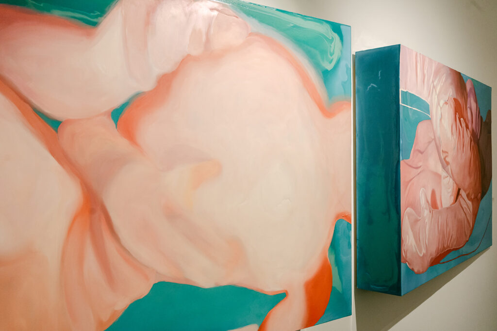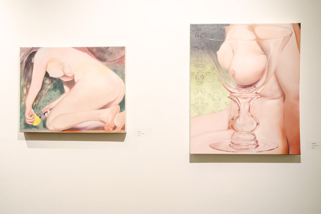 The female form is a common thread between Ford’s current study in still life and her earlier work. Pieces such as “Embrace” (2022) feature unsettling images of both man-made and natural female bodies, highlighting how women are often treated as objects. She uses materials like plastic and human skin to explore the idea of women being seen as part-human, part-object, where it’s hard to tell what’s real and what’s artificial.