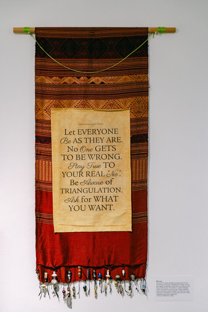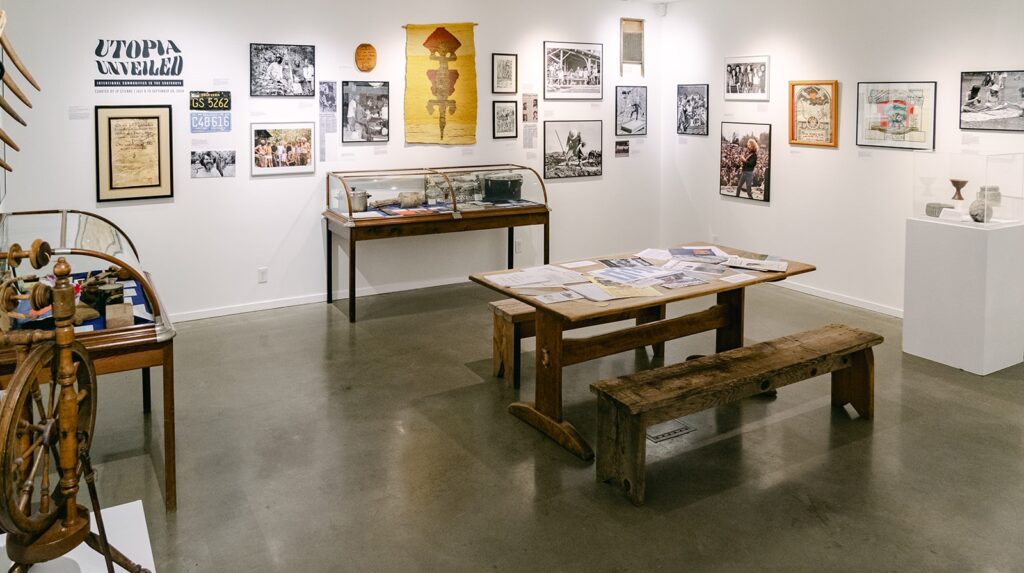 “It’s been quite a journey finding out about the many ways that intentional communities and counterculture history have shaped our area,” says Archivist and Collections Manager Jean-Philippe Stienne, who curated the exhibition. “Much of this local history has not been presented before in a gallery setting.”