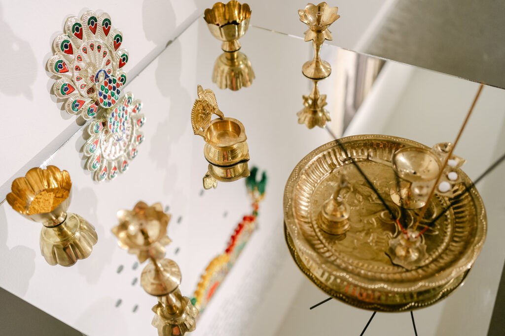 Guest curated by Lucy Carver-Brennan with support from local artist Surya Sameera and contributions from numerous artists and community members, Within This Earthen Vessel runs concurrently with ਸ਼ੀਸ਼ੇ ‘ਚਤਰੇੜ | sheeshe ‘ch tharer | a crack in the mirror, by artist Simranpreet Anand with Conner Singh VanderBeek. Within This Earthen Vessel and Sheeshe ‘ch tharer complement each other beautifully, as both exhibitions use many of the same iconographies and imagery, allowing local artists to bring these concepts home.